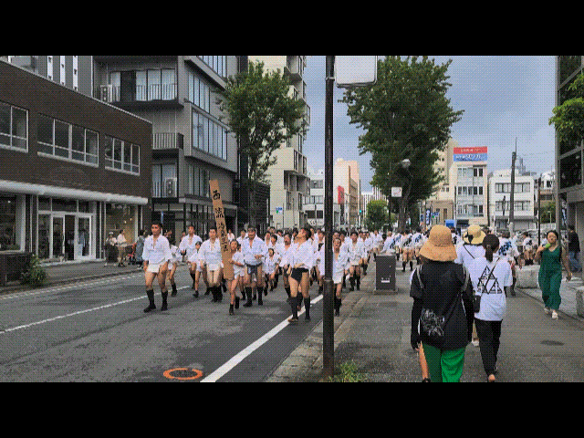 이 참여하는 인파가 상당히 많아서 그런지 팀 하나가 다 같이 괴성을 지르며 전력으로 달려올 때의 비쥬얼은 꽤나 압도적이었다. 암튼 나는 여기서 어딜 갈까 방황하다가 결국 소담과 제문의 숙소로 가기로 맘을 정하며 이들과 휩쓸렸다 이탈했다를 반복하며 그들에게서 멀어지기 시작한다. 다들 마츠리 보러 가는데 나는 홀로 영화 촬영지로... 고독한 여행가..