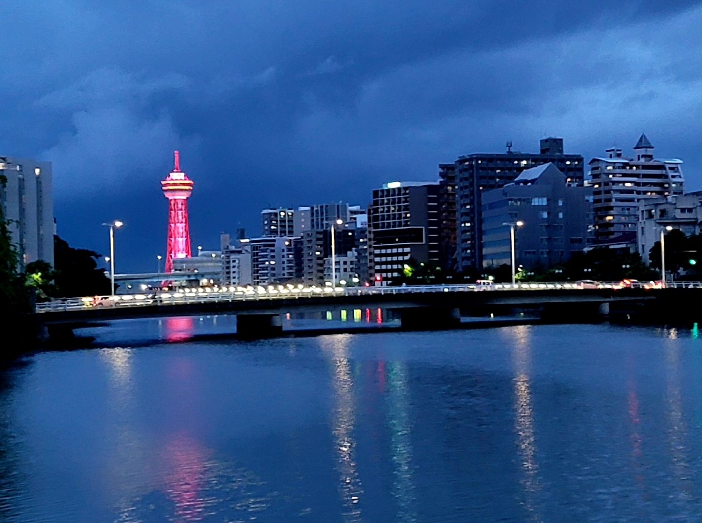 안 지나다녀 본 곳으로 가보려고 나카 강과 하카타 강 사이에 위치한 나카스 섬 최 상단의 벤텐 다리와 다이코쿠 다리를 넘어갔는데 번화가와 좀 떨어져 있어 그런지 주말 피크 시간에도 인적이 드물었다. (살짝 무서웠음 ㅎㅎ) 그래도 이번 여행은 송신탑 (정식명칭은 하카타 포트 타워_ 올라갈 수도 있다고 한다)을 맞이하면 항상 즐거웠다. 작 중 해효가 후쿠오카에서는 어디서나 보인다고는 하지만 사실 가보니 어디서나 보이진 않고 뜨문뜨문 갑자기 나타난다.