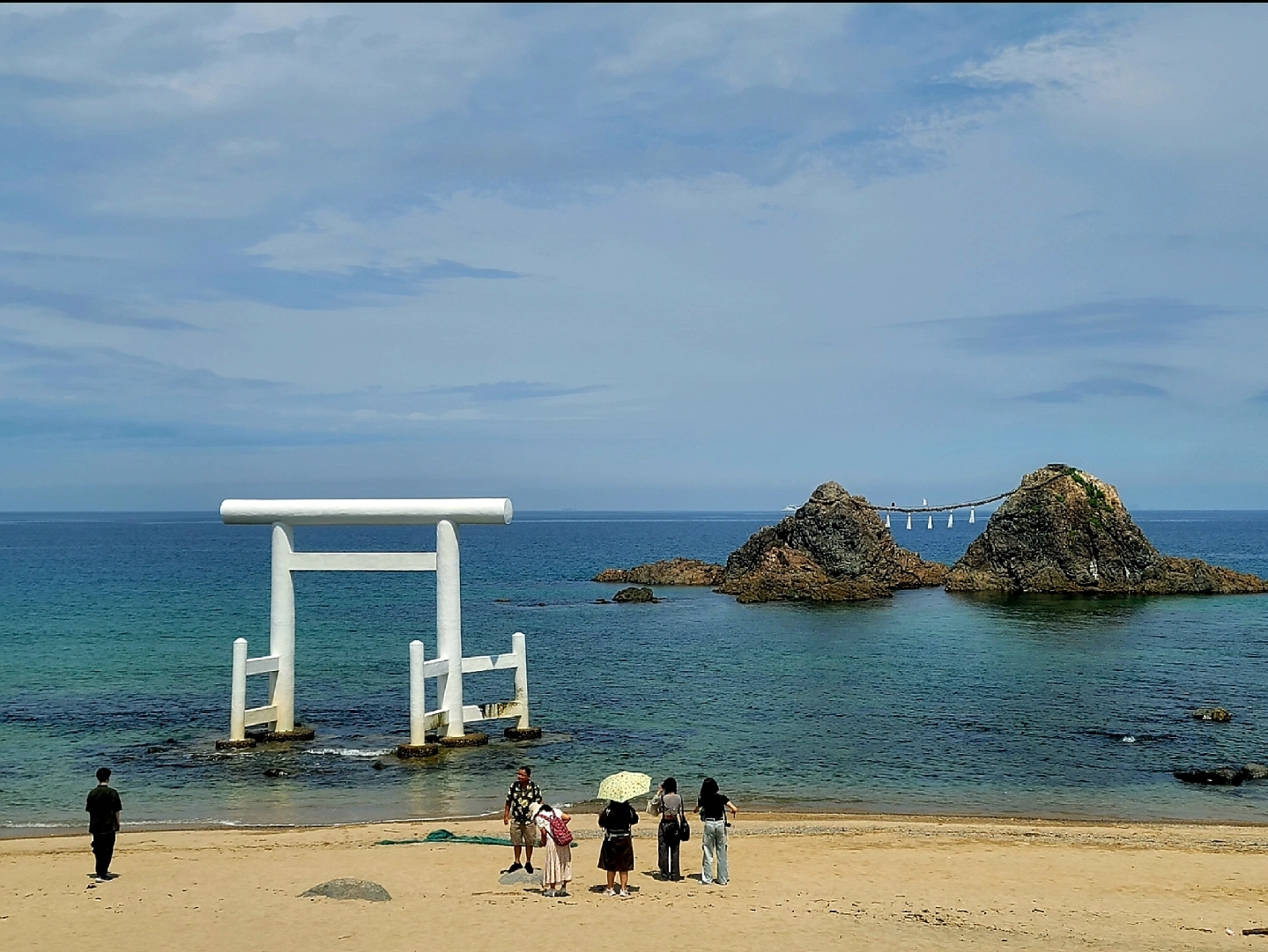 그리고 그 길을 따라 후타미가우라 역까지 쭉 내려가서 맞이한 후타미가우라 부부바위! 이것 만으로 이번 여행의 테마 50% 달성! 여기서 한 시간 정도 걷다가 앉았다가 하면서 사진도 찍고 (근데 여기도 저 하얀 신사 사이로 바위가 쏙 들어오는 샷을 찍느라고 또 줄 선다... 하아.. 이 눔의 줄...) 영상도 찍고 하며 팜비치 쪽으로 다시 거슬러 올라간다. 여기 부부바위 자체는 일본 스러운데 카페, 음식점 등 일대 주위 분위기는 죄다 하와이 갬성이다 ㅎ
