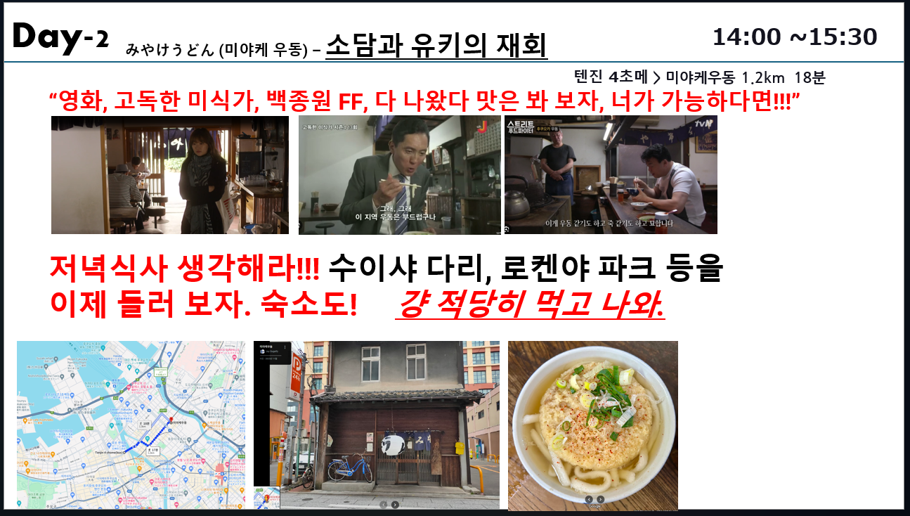 결과> 후쿠오카에 돌아왔는데 도시 연 중 최대의 마츠리/축제가 열리는 기간이었는데, 만나버렸다. 그 무리가 이 날 미야케 우동을 전일 예약 선점을 해버렸다. 그래서 못 먹었다. ㅠㅠ