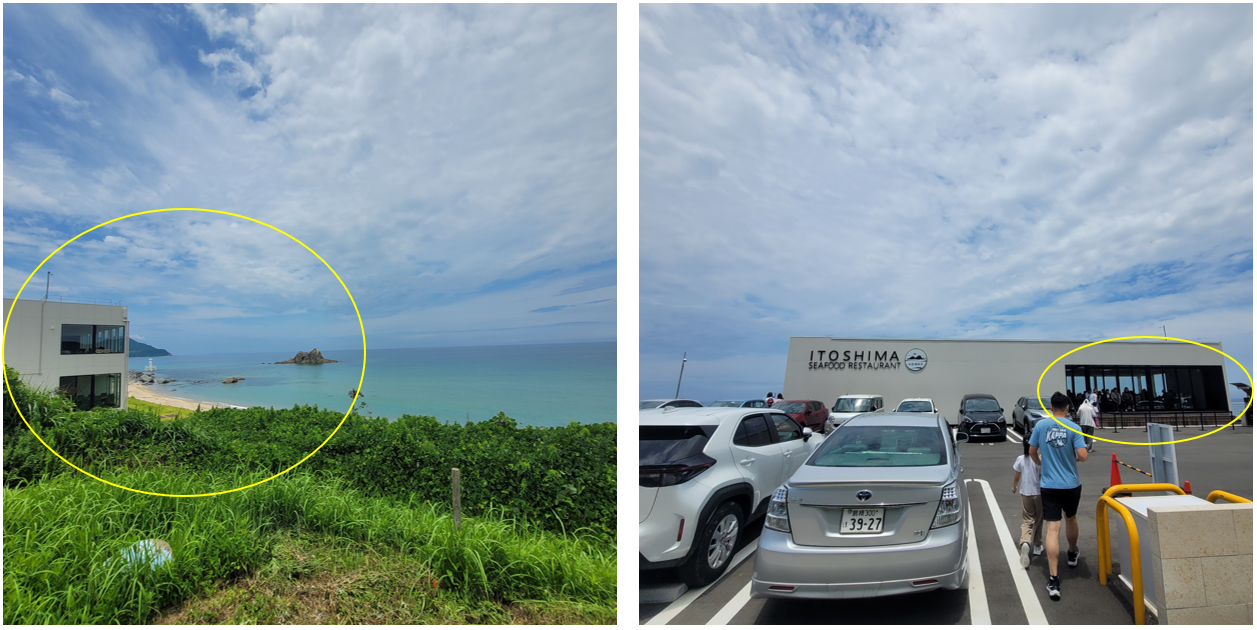 결과> 또 한 번의 눈물의 덮밥이라니 세상 배 부른 소리 하고 자빠졌네. 뭘 할 수 없이 여기서 해결하기로 해.. 팜비치 쪽으로 걸어 올라가며 이 가게를 보니 (11시 59분) 이미 주차장은 꽈아악!! 채워져 있고 (평행주차는 아닌데 막 꽈꽈꽉 채워져 있고) 이미 웨이팅 장난 아님. 먹고 싶었어도 못 먹었을 것이다. 근데 실제로 외부에서 보니 뷰가 상당히 좋아 보여 시간 여유가 있는 사람들은 한 번쯤 먹어봐도 괜찮을 것 같기도 하다. (이 부근 일대를 돌아다니며 본 유일하게 줄 서있는 집이었다 근데 딴 곳들도 괜찮아 보이는 데가 많았다.. 뭐 굳이..같은 느낌? ㅎㅎ)
