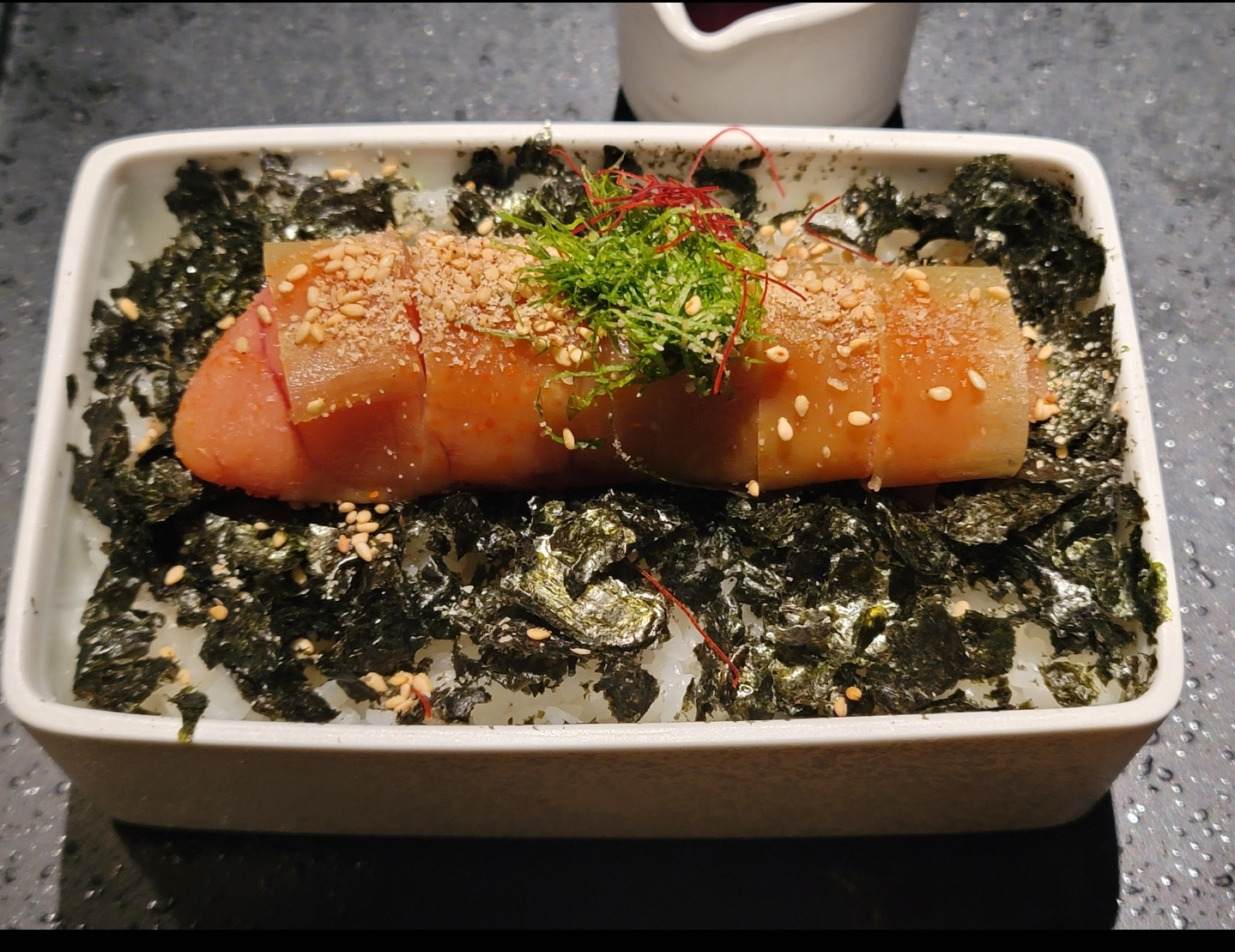 음식은 맛있었다. 식당의 은은한 불 빛의 조명도 좋다. 직원들도 친절하다. 눈은 절대 안 마주치는데 물 컵 비워져 있으면 어떻게 알고 귀신같이 와서 채워 준다. 적당히 먹어야지 했는데 명란이 원래 쫍쪼름 하다 보니 쑥쑥 넘어간다. 유자 간장과 후추도 맛있었다. 결국은 거의 다 먹었다. 이게 와! 하면서 기절할 만큼 맛있는 건 아닌데 그냥 꿀꺽꿀꺽 넘어간다. 이른바 밥도둑. 간장게장만큼은 아니지만 게장과 계란밥 사이에 위치한 그런 도둑놈 레벨 같은 느낌?