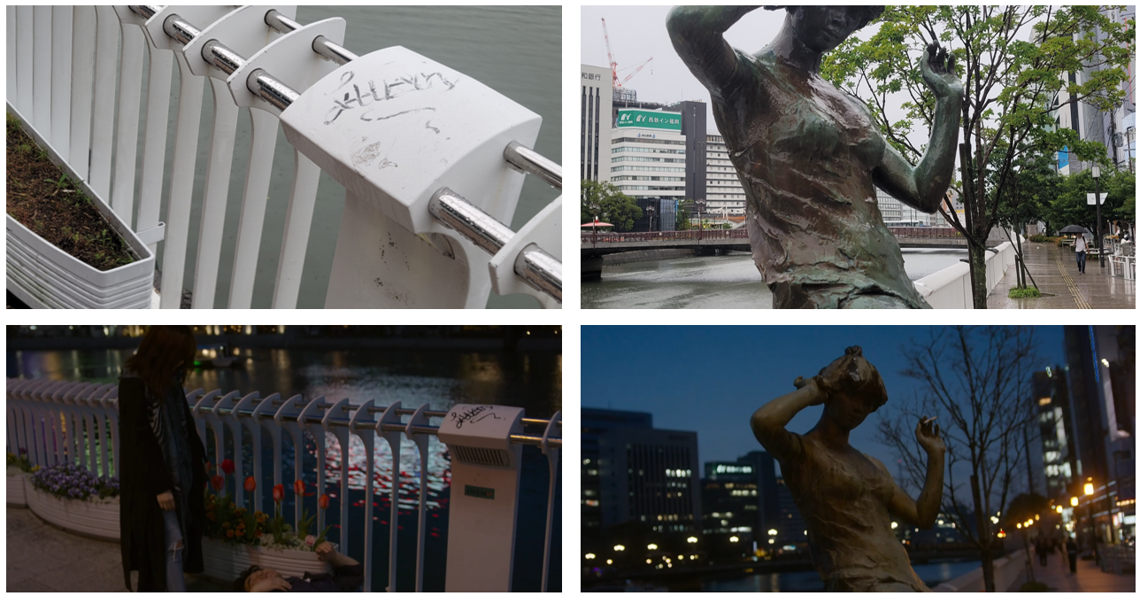 후쿠하쿠 만남의 다리에서 나카스케 다리 방향으로 조금만 내려오면 발견할 수 있다. 제문이 오바이트하고 소담이 될 대로 돼라 하며 담배 피우며 동상 바라보는 장면인데 막상 가보니 여기는 동상 및 난간의 낙서도 그대로 보존되어 있다. 구글맵에서 "Cocoa fukuoka"로 검색하면 쉽게 찾을 수 있다. (여기도 영화 속 배경 간판 보고 위치 찾은 곳... 코코아 간판은 아니지만 코코아로 검색 시 더 찾기가 쉽다)