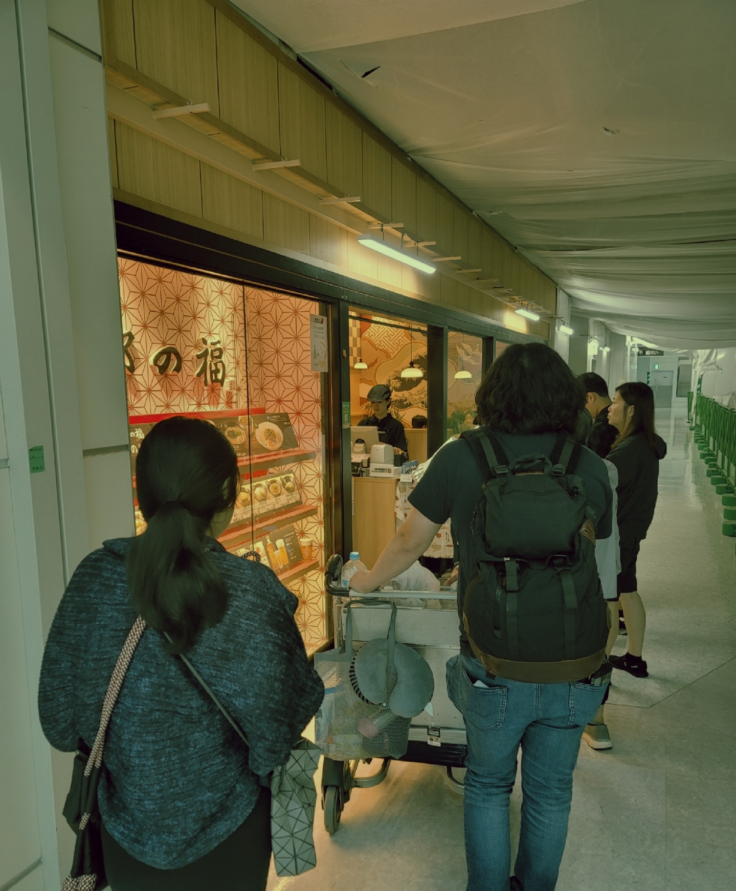 결과> 뭘 들렀다 가. 택시 타고 이치란 라멘 텐진 니시도리 점 도착하니 줄 서있다. 본점 아니라서 괜찮을 줄 알았는데. 오판. 한 20분 기다렸다. 배만 대충 채우고 나왔다. 많이 짜다. 맛도 그냥. 차슈와 계란은 괜찮았다. 아주 어릴 적 기억이라 많이 왜곡되어 있겠지만아버지 퇴근 시간에 나가 같이 먹던 역전 포장마차의 라멘 맛의 기억을 다시 꺼내주기에는 모자랐다. 암튼 내 바로 뒤에 동남아 커플 손님들의 키오스크 주문을 도와줬는데, 사실 나도 첨이라 네이버 켜서 보고 따라했던 거 그대로 해 준 거지만 나름 타인에게 도움을 줬다는 거에 흐뭇? 했다. 자리도 내 옆자리로 앉아서, 나갈 때 "Have a great trip~!" 서로 손 흔들어 주며 훈훈한 엔딩~ 이것이 살짝살짝 스쳐가는 여행의 맛이다.