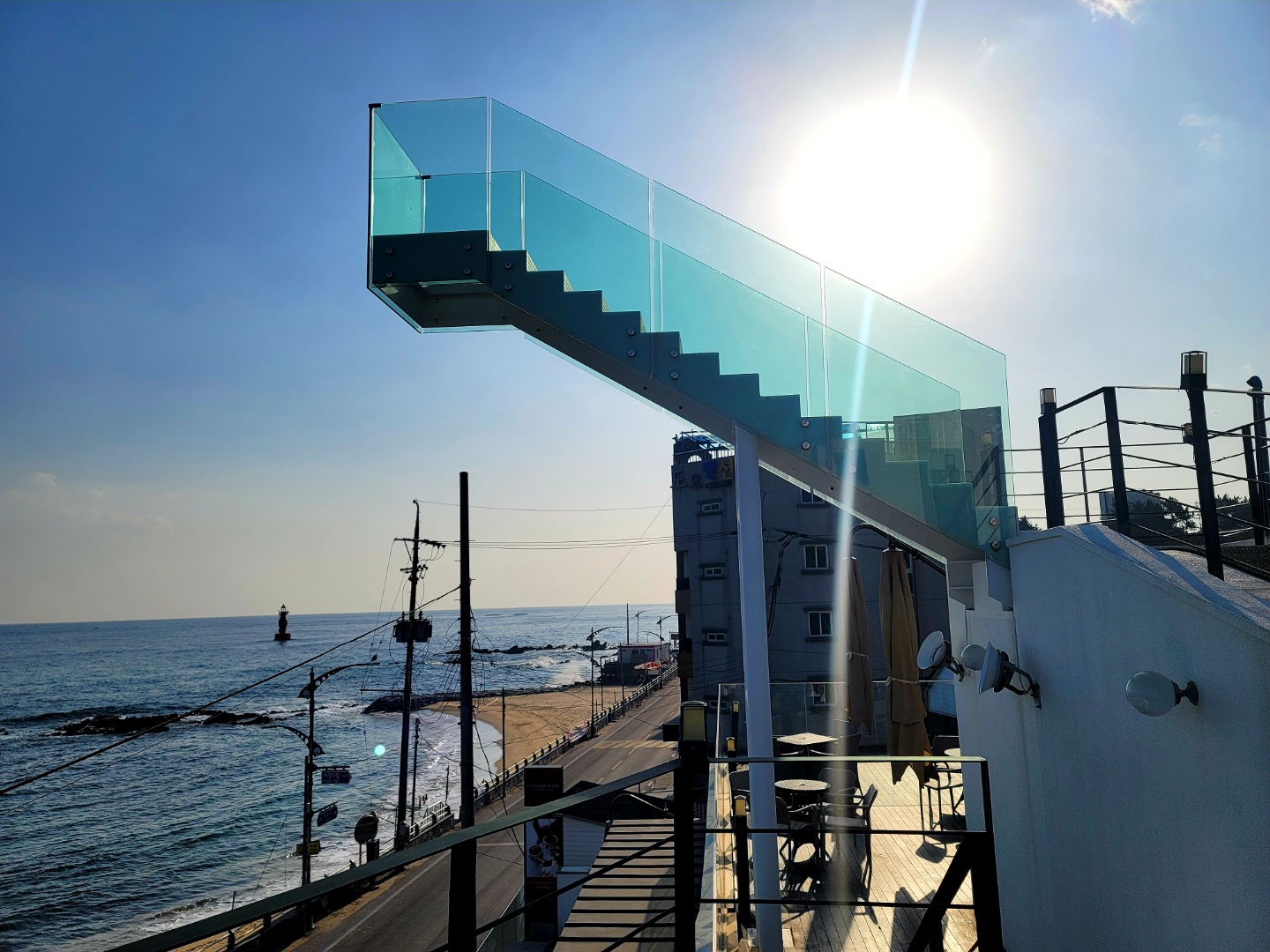이런 천국으로 가는 계단을 많이 볼 수도 있는데, 여긴 묵호항의 투썸플레이스다. 개인 카페들보다 값이 싼 프렌차이즈인데도 이런 뷰를 가지고 있다. 그냥 테잌 아웃 할거면 프렌차이즈가 가성비 값이다