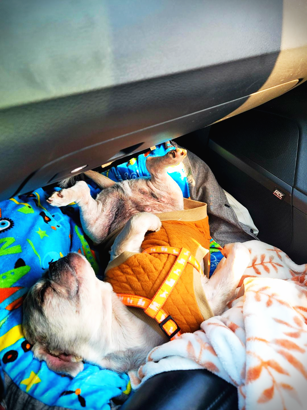 사실 이 시기가 가장 좋다. 애견이 들어갈 수 없는 곳이 생각보다 많기 때문에 차에 두는 경우가 많은데 날씨가 이 때즘이 덥지도 않고 춥지도 않아 제일 좋다. 다만 자동차에도 많은 준비를 해야한다. (애들이 하도 여행을 많이 하다보니 다행히 모르는 펜션 방 보다는 차 안을 더 편해한다.) 잠도 잘 자고. 암튼 동물들도 여러마리면 자연스레 위계질서가 잡히기 때문에 자동차 안에서도 자기들의 공간이 정해진다. 앞 쪽 운전석은 서열 1위의 자리다. 바닥 쪽에 집에서 사용하는 수제 쿠션을 대 주고 자리에도 이불 더미로 공간을 마련해 준다.