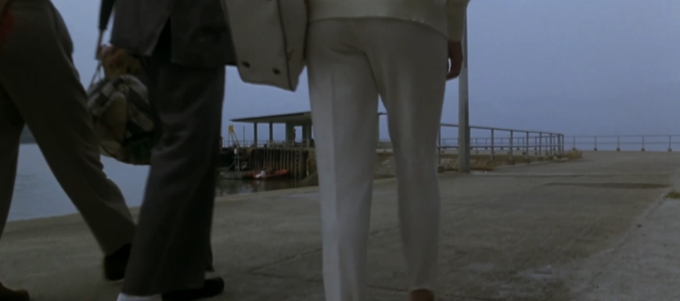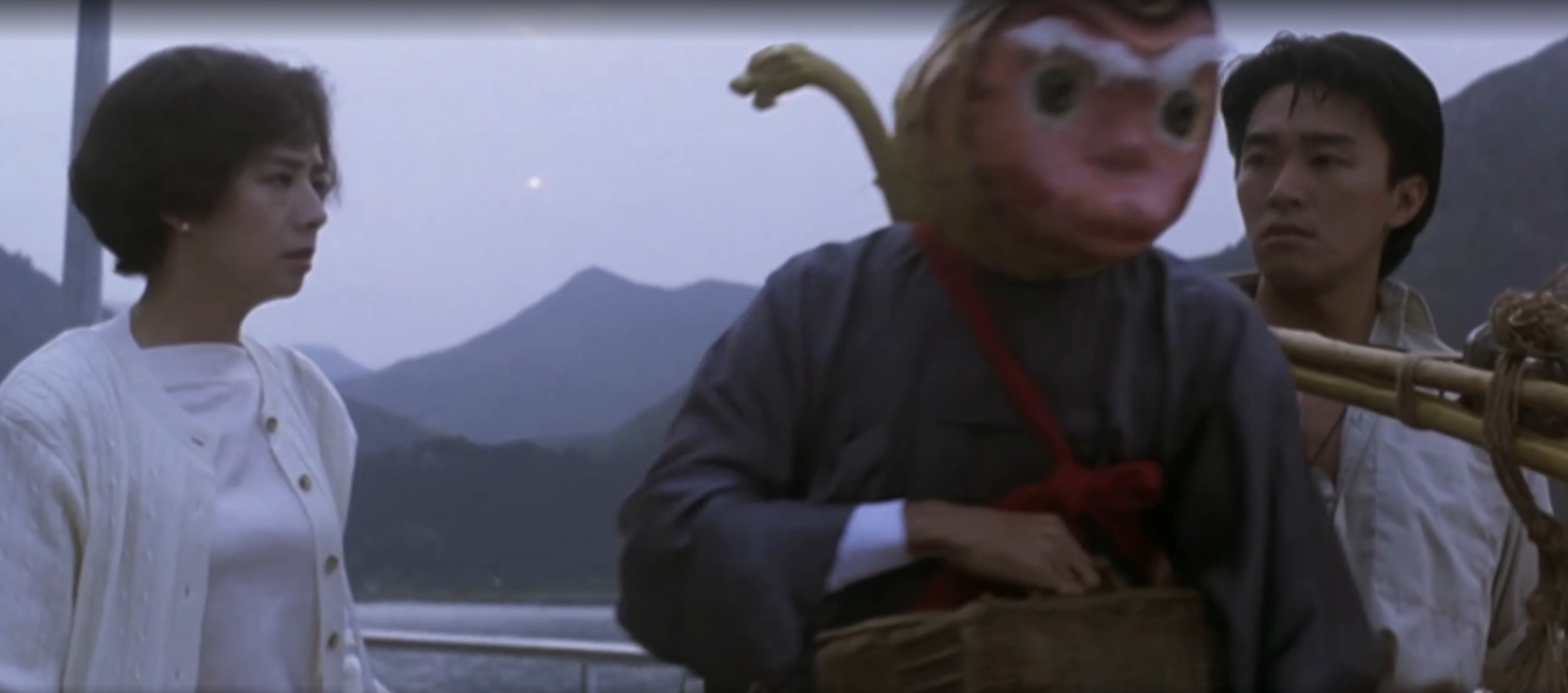 페리에 막 도착한 장만옥을 낚아채서 키스신이 이루어질 공중전화박스로 뛰어가는 유덕화, 영화의 하일라이트