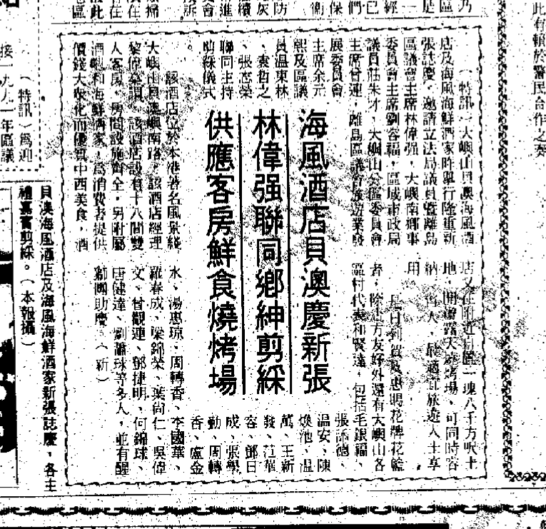 눈에 들어오지도 않는 한문 키워드. '란타우' 단어만 불을 키고 찾다가 1983년의 짤막한 기사를 발견. 무이 워와 푸이 오 사이 새로운 버스 노선이 개통된다는 뉴스다. 첫차는 무이 워에서 6시 출발, 막차는 푸이 오에서 오후 6시 출발. 요금은 5센트. 역시 아쉽게도 위치에 대한 도움은 되지 않는다.
